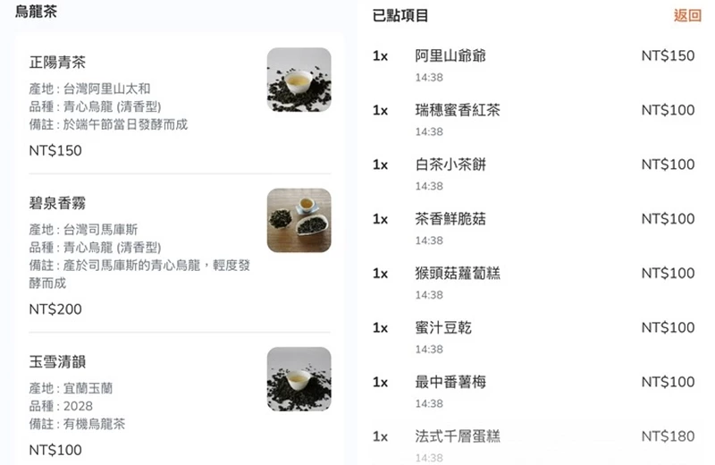 2.茶葉單點費用另計(每份茶提供7g,可多人共飲,請斟酌人數需求加購份數)