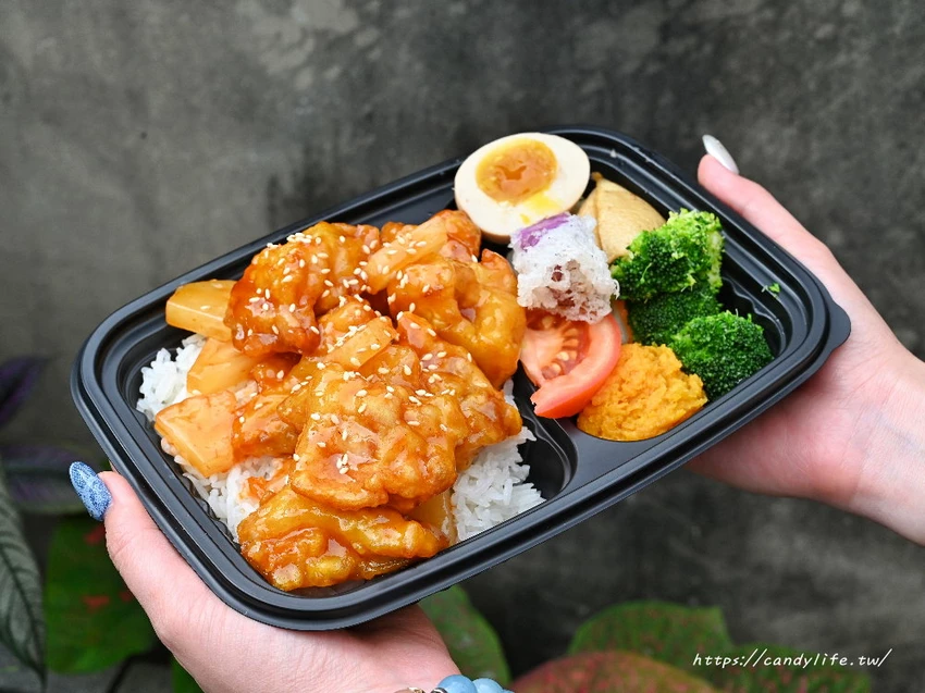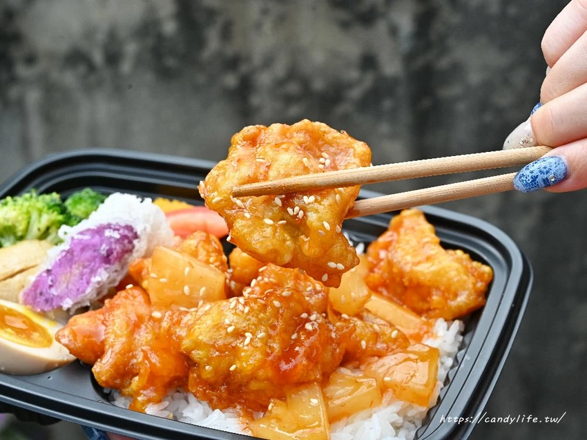 一口咬下,先感受到外皮的酥脆,接著是鮮嫩多汁的雞腿肉,最後是酸甜交織的糖醋風味在口中漫開,旁邊還有香甜的鳳梨可以搭配享用,是款大人、小孩都喜愛的餐盒口味