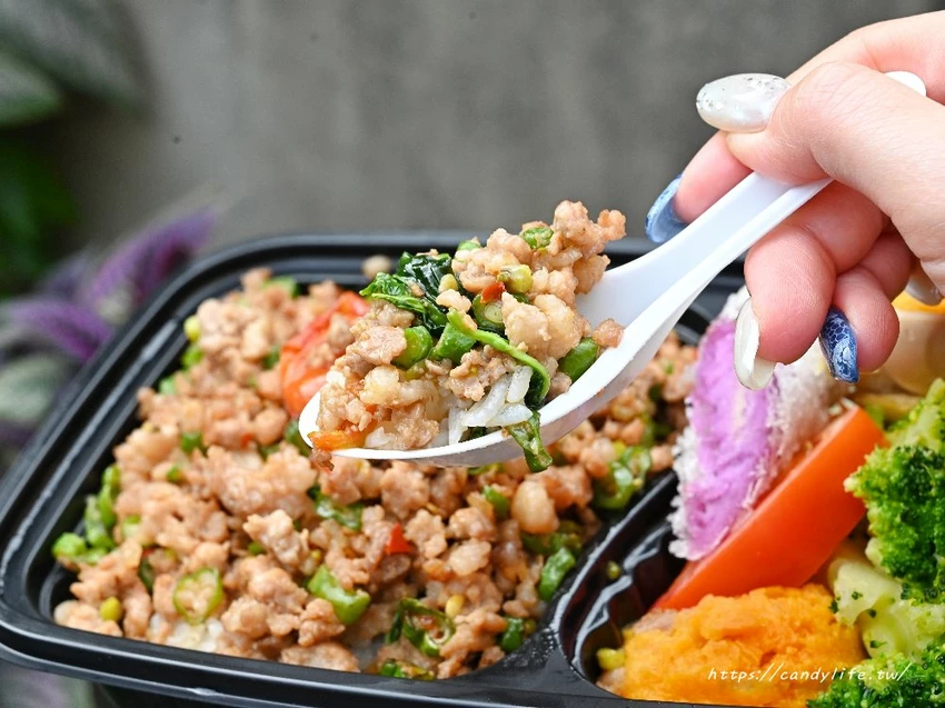 志氣雞飯除了多樣化的雞肉餐盒之外,還有香辣打拋豬!這道料理採用新鮮溫體豬絞肉,搭配鮮紅的小番茄、清脆的長豆丁及香氣濃郁的九層塔大火快速拌炒,完美重現經典台式與泰式風味的結合