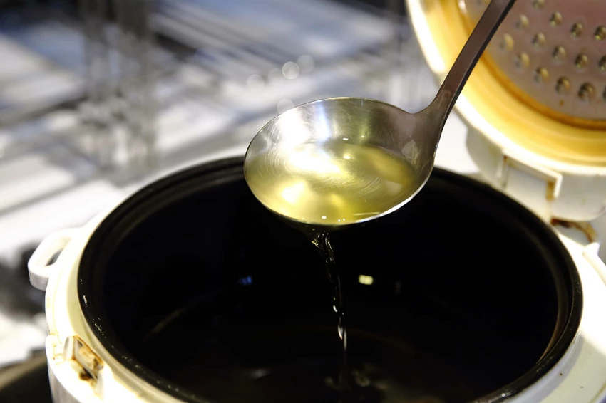 先用麻油、洋蔥等香料爆香,再加入豬肉片炒至半熟,激發香氣後,倒入高湯煮滾