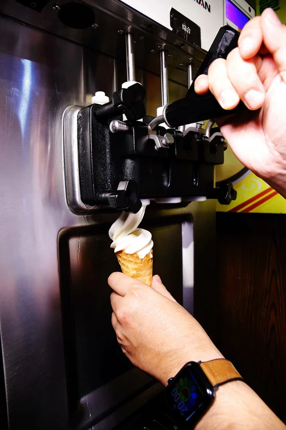 是自己擠的霜淇淋不是挖的冰淇淋哦,配方升級,吃起來更香濃;還可以搭配