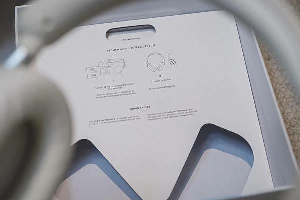 Sudio 的包裝延續一貫的北歐簡約風格,打開盒裝即可見到以防塵袋細心包覆的耳機,展現對細節的重視。最貼心的是操作說明直接印在盒內側,無需翻找繁瑣的紙本說明書就能快速上手。耳機側面設有一顆小巧精緻的圓形按鍵,只需長按小圓點即可開機,操作邏輯非常直覺,讓使用者從開箱到聆聽的過程流暢無阻,科技產品也能擁有溫暖的使用體驗。