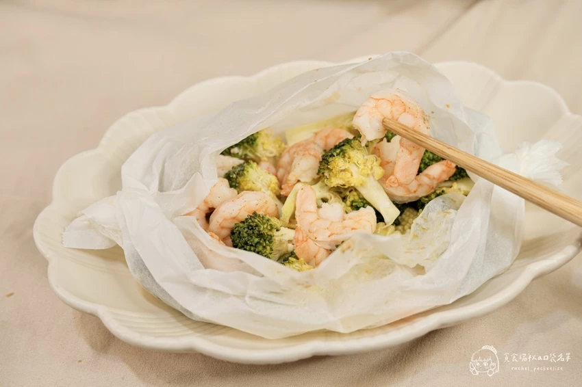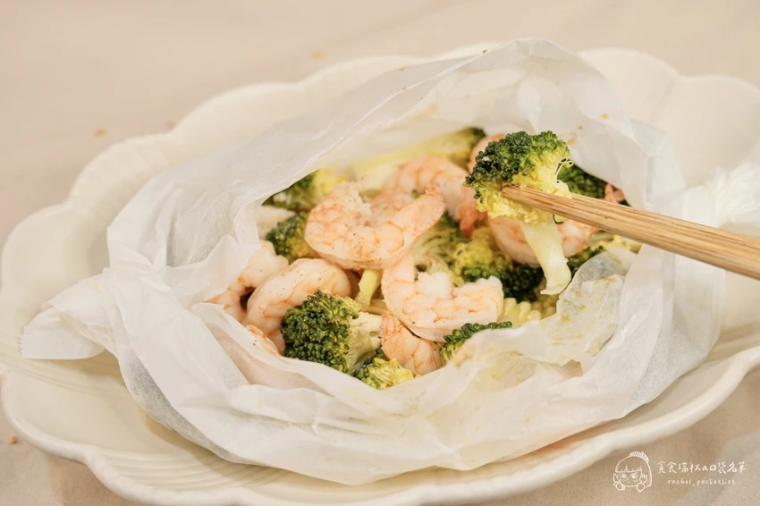 紙包鮮蝦蔬菜,鎖住鮮甜口感Q