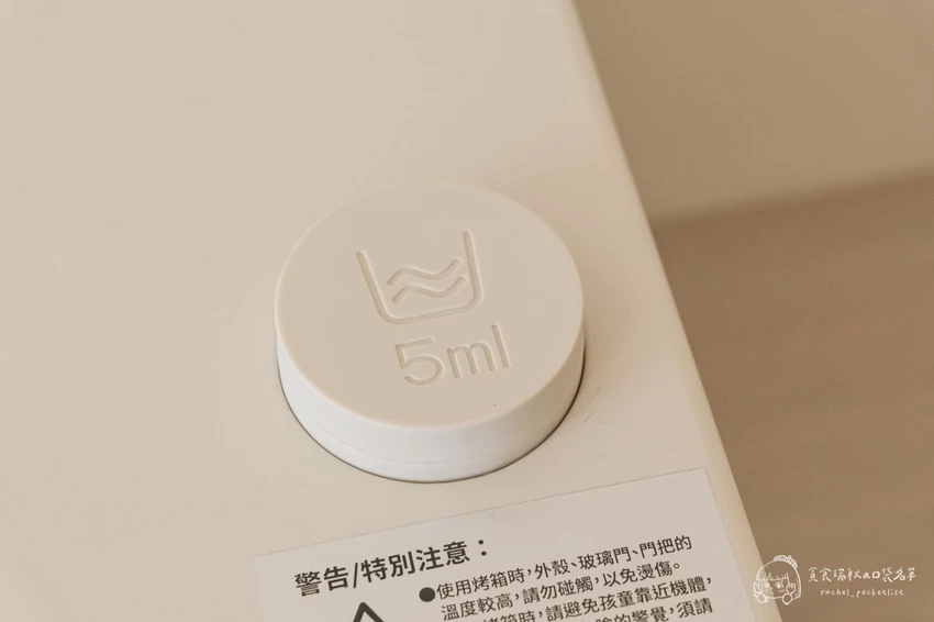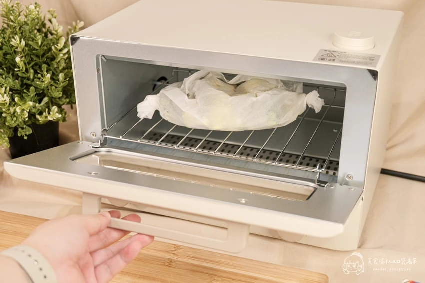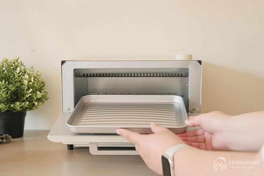 在功能表現上,它採用遠紅外線加熱技術,能確保食材受熱均勻,烤出來的色澤漂亮且不易焦邊。最令人驚豔的是「蒸氣補水功能」,只需在上方注水口加入 5ml 的水,加熱時便會產生蒸氣鎖住水分,避免食物乾柴。搭配操作直覺的溫控與定時旋鈕,即便是完全沒有經驗的烘焙新手,也能第一次操作就上手。