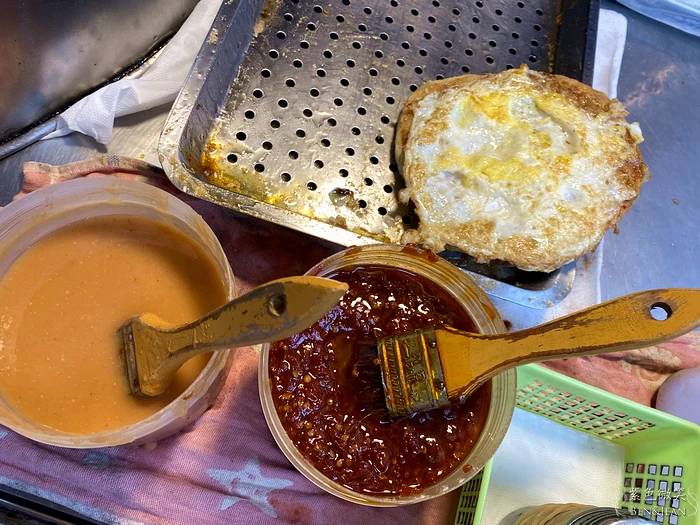 它跟羅東有名的義豐蔥油餅比起來較油些,但是皮煎得很酥香,加上特製甜辣醬真的很棒喔!