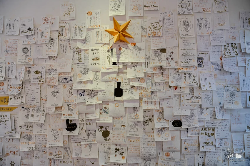 植光圈不追求翻桌率或大量座位,桌椅之間保留了足夠的距離,非常適合想要安靜工作或專心閱讀的人。店內提供書籍供客人翻閱,牆上還貼滿了密密麻麻的小紙條,紀錄著來訪客人的心情點滴,其中不乏設計感十足的留言,讓這間咖啡館增添了許多溫暖的人情味。