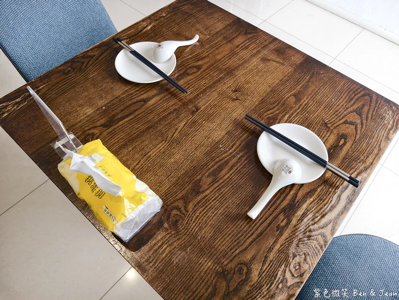 用餐區就在一旁,但桌上擺好餐具,倒有點質感餐廳的模樣。一般小吃店真的不會這樣擺!!!