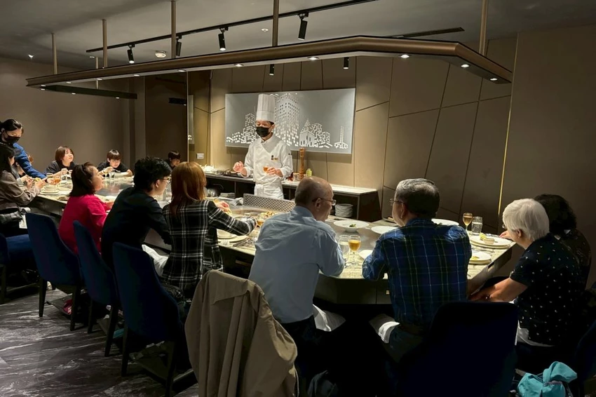 ▼【夏慕尼新香榭鐵板燒】用餐到最後甜點時間,會換到專屬的甜點用餐區,讓大家可以更加自在聊天無壓力。