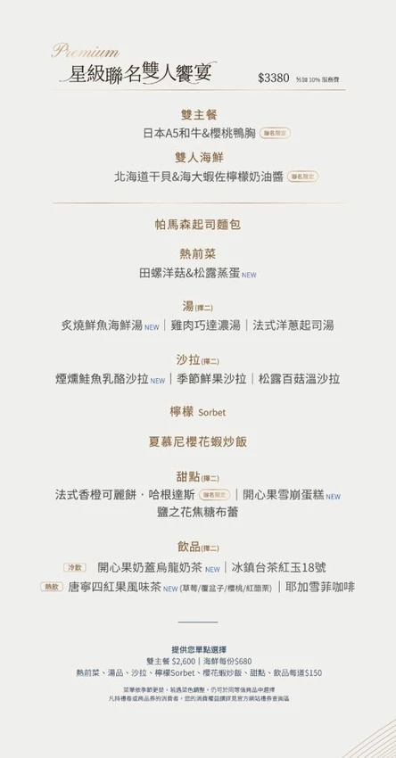 冬季限定|星級聯名雙人饗宴 售價💰3380元+10% 期間限定 2025/12/02-2026/01/11