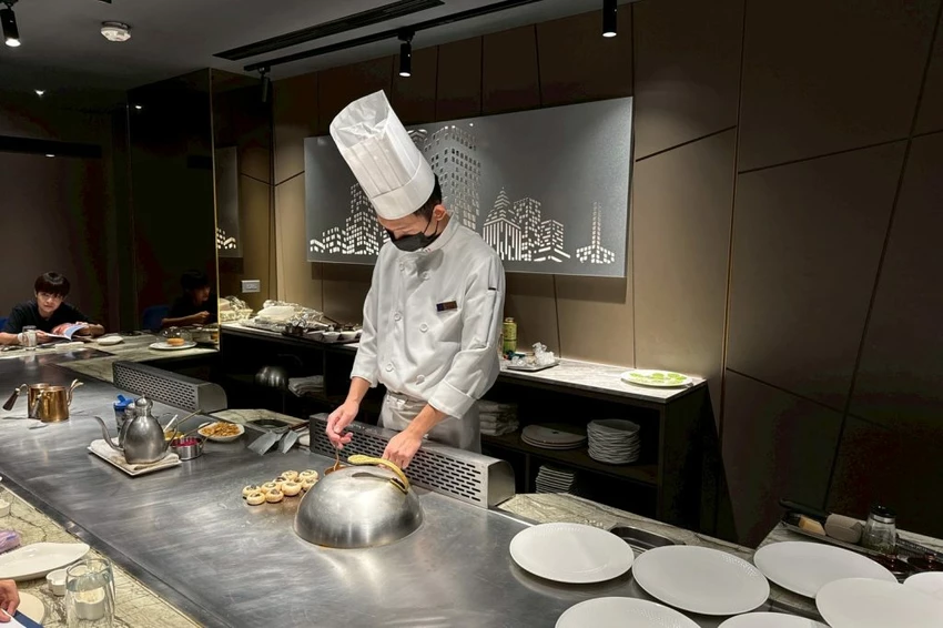 ▼【夏慕尼新香榭鐵板燒】的每個座位都在鐵板面前,可以看到師傅精湛的料理手藝,同時滿足視覺味覺的多重享受!