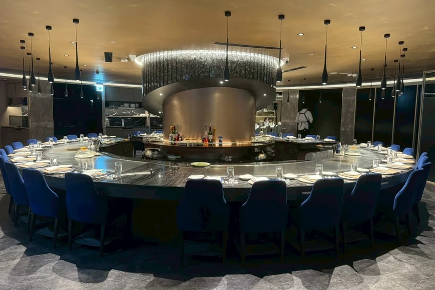 ▼【夏慕尼新香榭鐵板燒】用餐環境奢華典雅,以燈飾打造出華麗奢華感,座位數很多分為多區用餐空間,但就算是平日來還是人潮滿滿,建議可以先訂位以免客滿。