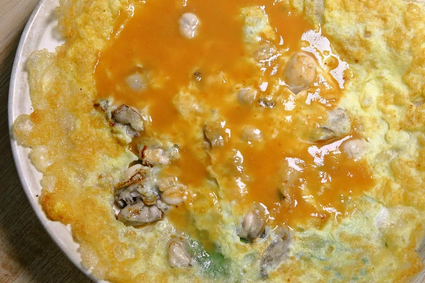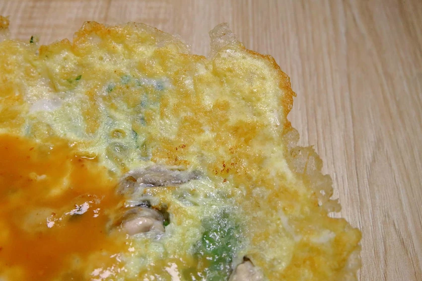 而且他們家獨特的麵糊,煎起來的蚵仔煎特別的酥脆
