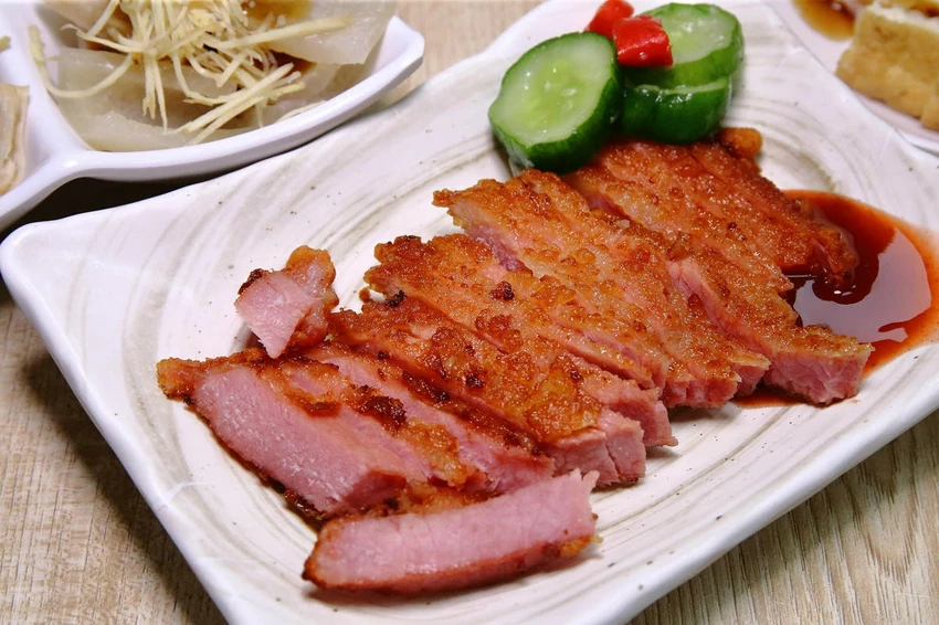 紅色的紅燒肉上桌,大口咬下卡滋卡滋,外皮酥脆裡頭彈牙而軟嫩