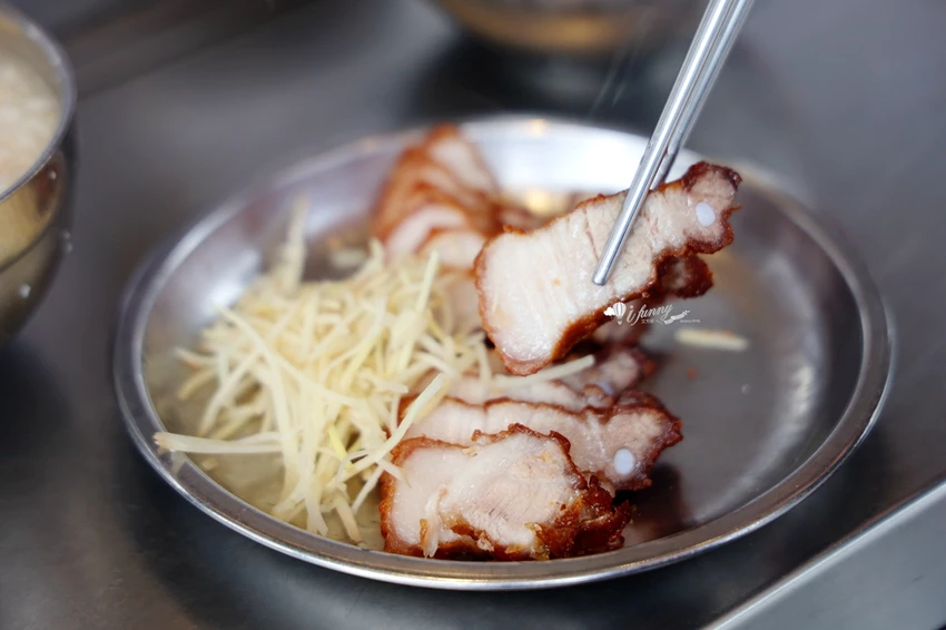 招牌鹹粥一碗只要 30 元,湯頭基底使用豬大骨長時間熬煮,將骨髓與膠質精華完全釋放,喝起來帶有天然溫潤的甜味,絕非味精調味可比擬。粥體偏向南部的「湯飯」口感,米粒粒粒分明不軟爛。配料方面相當豐富,除了吃得到赤肉條,更加入了獨特的豆皮粒、蝦米與紅蔥頭提香,每一口都能感受到豐富的層次感,雖然價格略高於周記,但豐富度絕對物超所值。