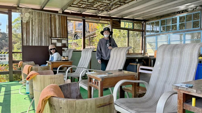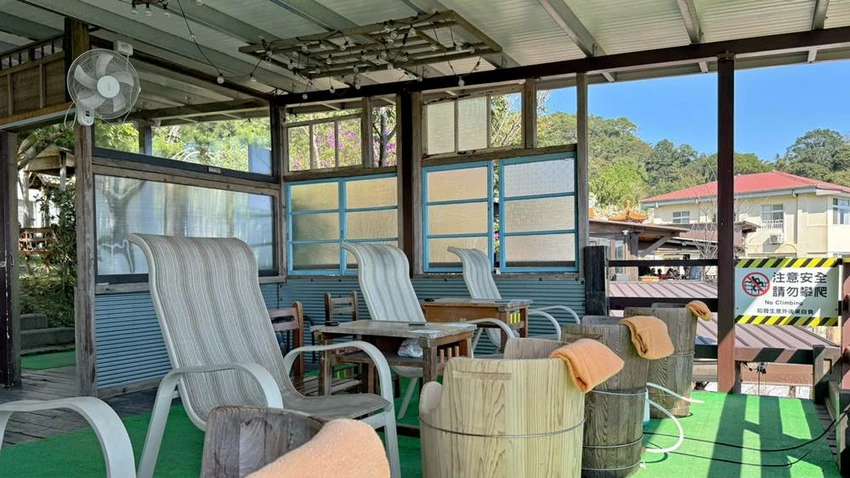 除了美食,這裡的「老薑蒸足浴」更是不能錯過的重頭戲。不同於一般熱水泡腳,這裡是利用約 50 度的老薑熱蒸氣進行薰蒸,溫度可自行調整。開放式雅座每人收費 299 元(40分鐘),也有雙人獨立包廂可選。坐在半戶外的空間,讓溫熱的蒸氣包覆雙腳,眼前盡是遼闊的山嵐美景,身心靈瞬間獲得釋放,是極致的舒壓享受。