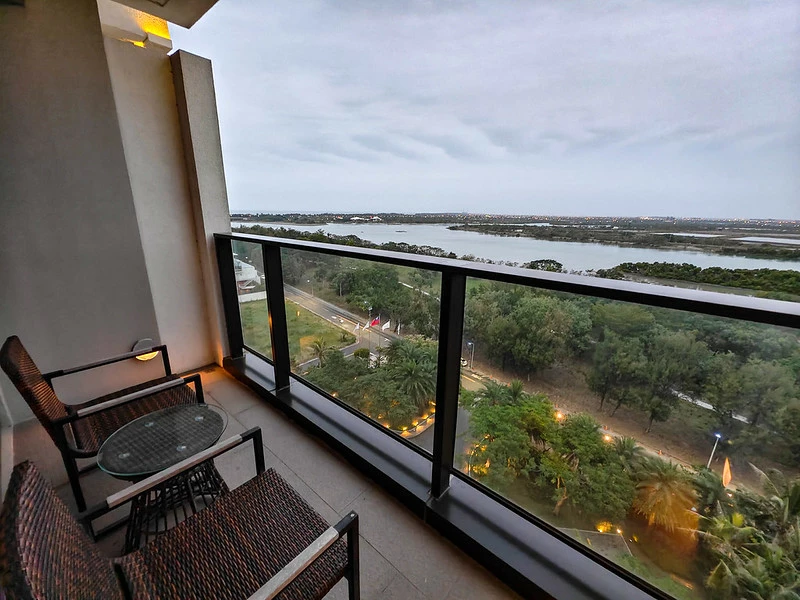 住宿安排在「台南大員皇冠假日酒店」,打破了環保住宿簡陋的迷思。飯店大廳採光通透,白天無需開燈即明亮舒適,展現了節能設計的巧思。房間維持五星級水準,備品齊全且貼心,陽台更能飽覽鹽水溪出海口的自然美景。晚餐的自助餐提供豐富在地食材,並將環保選擇權留給旅客,如更換毛巾與空調調整等。住在這裡,無需刻意做環保,卻能自然而然地融入永續生活。