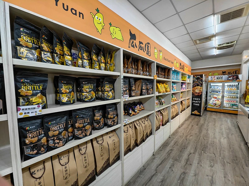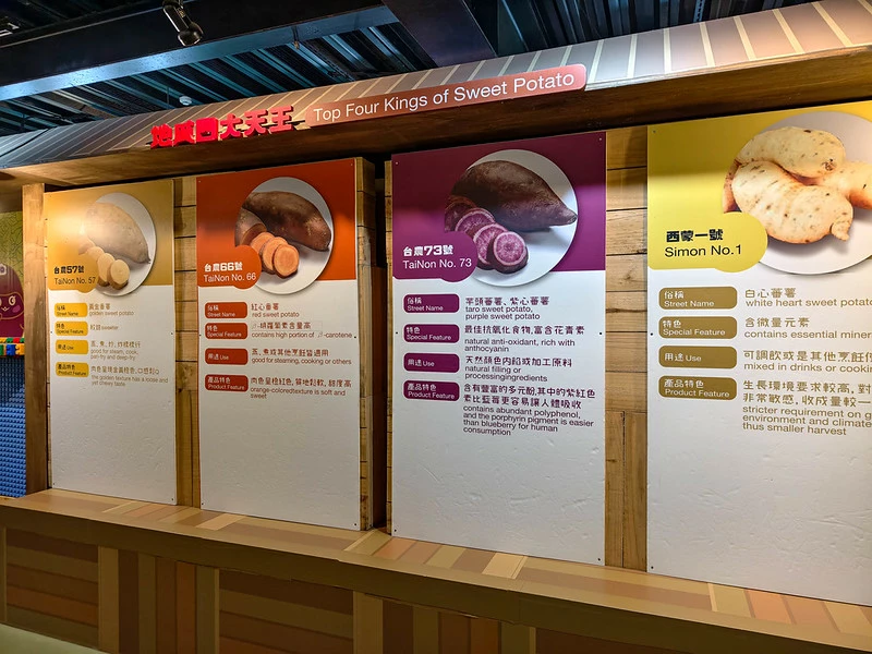 離開虎頭埤後,前往「瓜瓜園地瓜生態故事館」。這裡不僅是買伴手禮的好地方,更是一個充滿知識含量的食農教育場域。館內展示了超過 20 種地瓜品種,並設有如實驗室般乾淨的種苗培育室,讓人見識到現代農業的高度專業。透過了解地瓜的生長與應用,深刻體會到「在地生產、在地消費」的重要性,這正是低碳生活中最容易實踐的一環。
