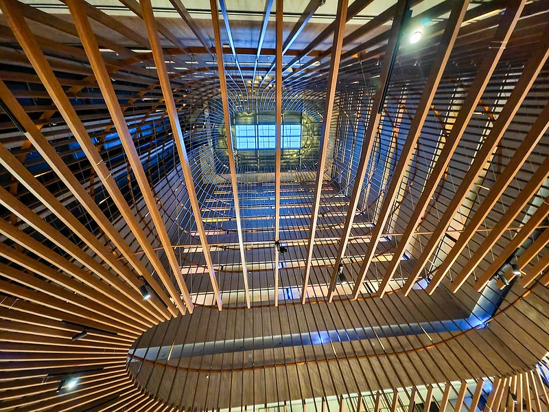 第二天的行程來到仁德的「十鼓文創園區」,前身為車路墘製糖所。園區保留了高聳煙囪與生鏽鋼骨,這些時間的痕跡並非廢墟,而是透過「再利用」賦予新生命,避免了拆除重建的高碳排。走進夢糖劇場,震撼的鼓聲在老舊牆壁間迴盪,讓人感受到文化傳承的力量。高空步道則讓人以全新視角俯瞰這座百年糖廠,見證工業遺產如何轉身成為充滿生命力的文化基地。