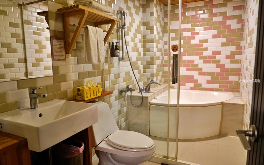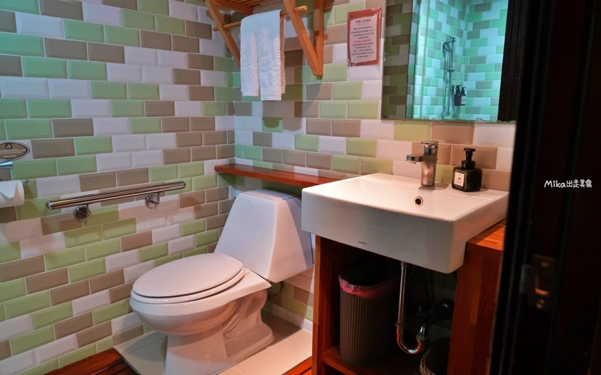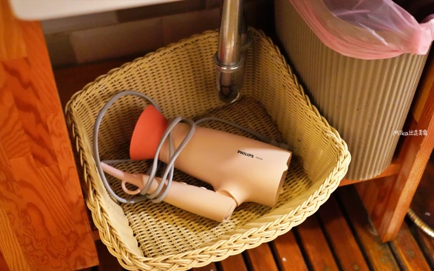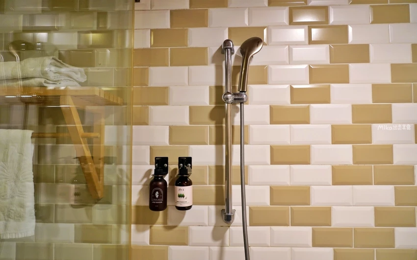 房型設計延續了整體的木質風格,佈置溫馨舒適,讓人有回家的感覺。雙人房空間寬敞,部分房型還附有浴缸可供泡澡放鬆。最特別的是,民宿提供的沐浴用品皆為自製的「檜木精油」洗髮精與沐浴乳,洗澡時被森林氣息包圍,極致療癒。房內備品擺放極具巧思,連吹風機等細節也相當講究,處處可見主人的用心。