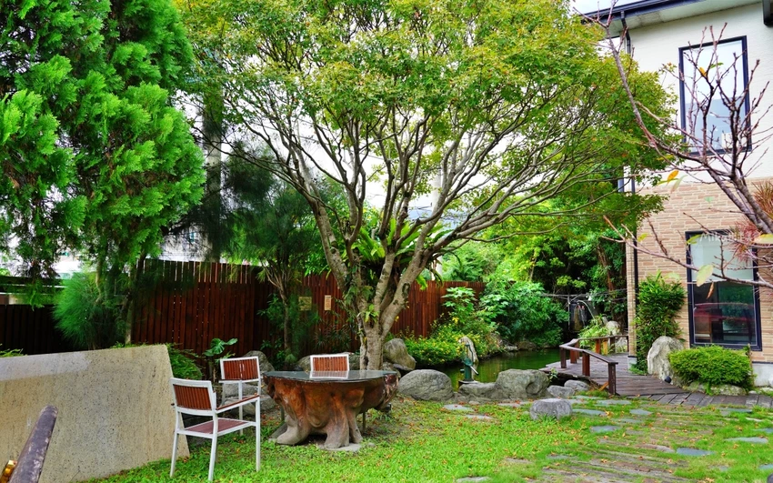 民宿保留了木材工廠的歷史底蘊,將傳統產業與觀光結合,成功轉型為特色民宿。園區內共有三間獨棟建築,皆以溫潤的木質調風格打造。走進室內,濃郁的檜木香氣撲鼻而來,讓人瞬間放鬆身心。戶外庭院擁有夢幻的綠色草坪與造景,白天綠意盎然,夜晚打燈後更顯浪漫,環境清幽且充滿自然的生命力。