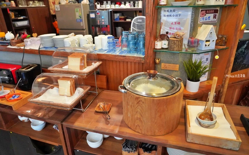 早餐部分不走華麗自助餐路線,而是提供充滿溫度的「清粥小菜」。餐檯上擺滿了熱騰騰的稀飯與各式家常配菜,也有吐司、荷包蛋與肉鬆等西式選擇。這種樸實親切的味道,特別符合長輩的胃口,就像在自己家裡的餐桌吃飯一樣自在。簡單卻用心的料理,為一天的旅程開啟了滿滿的活力。