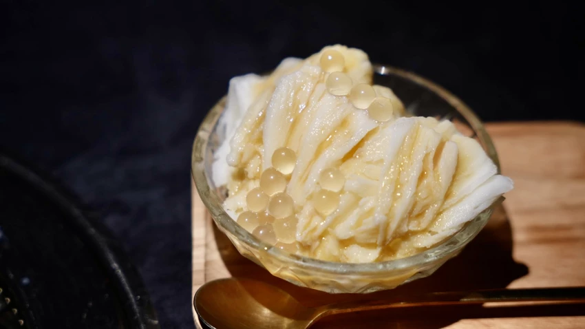 甜點有四種選擇:哈根達斯、雪花冰、檸檬愛玉、紫米粥,日式牛奶雪花冰很好吃,奶香味濃郁,畫龍點睛的荔枝爆爆珠,吃完燒肉接著吃雪花冰真的好讚!想吃熱的甜點推薦紅豆紫米粥,淋上特製奶蓋,口感滑順又綿密,有紫米獨特的香氣和甜甜的紅豆,是想像得到的美味!