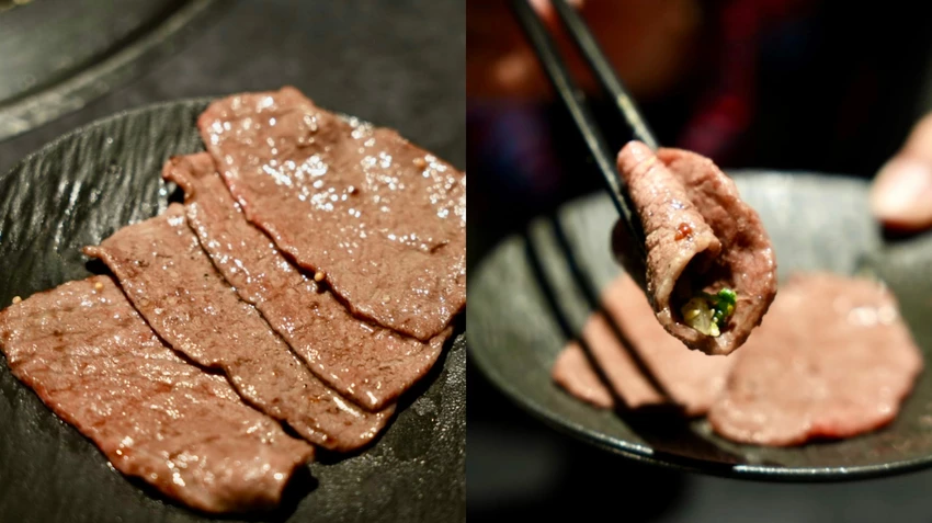 建議單面煎烤即可,薄切牛舌那嫩中帶脆,香氣十足但不油膩的平衡口感,是我最喜歡的燒肉品項唷!你們看烤完的牛舌是不是很誘人,我一個人可以吃完這一整盤!