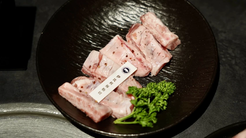 伊比利豬肋條油花很豐富,烤製外層金黃焦脆,咬下去中間會爆汁,肥瘦交織的口感很Q彈,真的很好吃呢~完全不輸牛肋條唷!