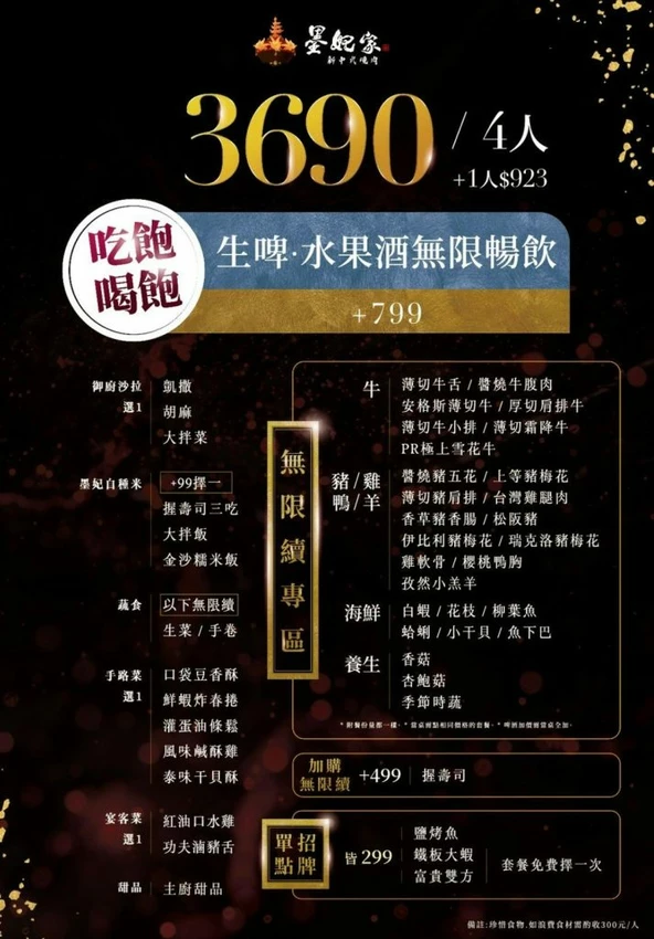 四人燒肉吃到飽?3690元 平均每人?923元