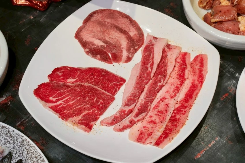 ▼光是牛肉就有七款不同選擇,真的超豐富!安格斯薄切牛口感軟嫩帶點咬勁,單吃或是沾醬就很美味,牛腹肉烤過後油脂香氣好誘人,每一樣牛肉的表現都很不錯,隨便點都不會踩雷。
