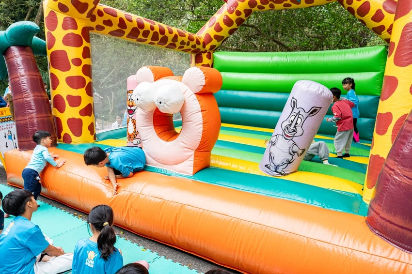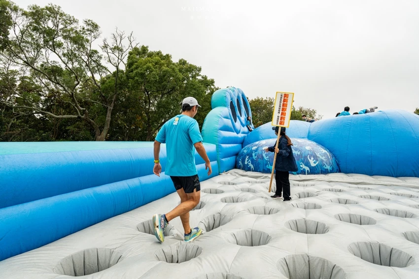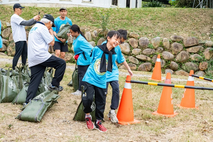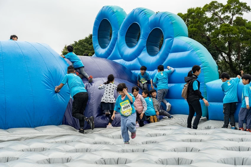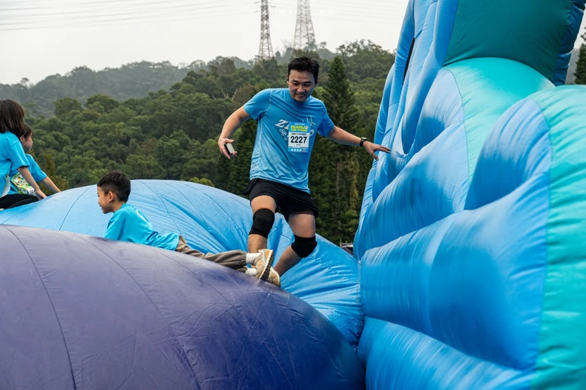 除了硬派的體能關卡,也有讓孩子玩瘋的趣味項目。氣墊遊戲關卡考驗身體平衡感,小朋友們在氣墊床上跳躍穿梭,玩到捨不得離開。經典的「匍匐前進」則需要參賽者在草地上快速爬行,展現柔軟度與協調性。通過重重考驗抵達終點的那一刻,每位選手臉上都洋溢著滿足的笑容,這不僅是一場比賽,更是一場充滿歡笑的冒險。
