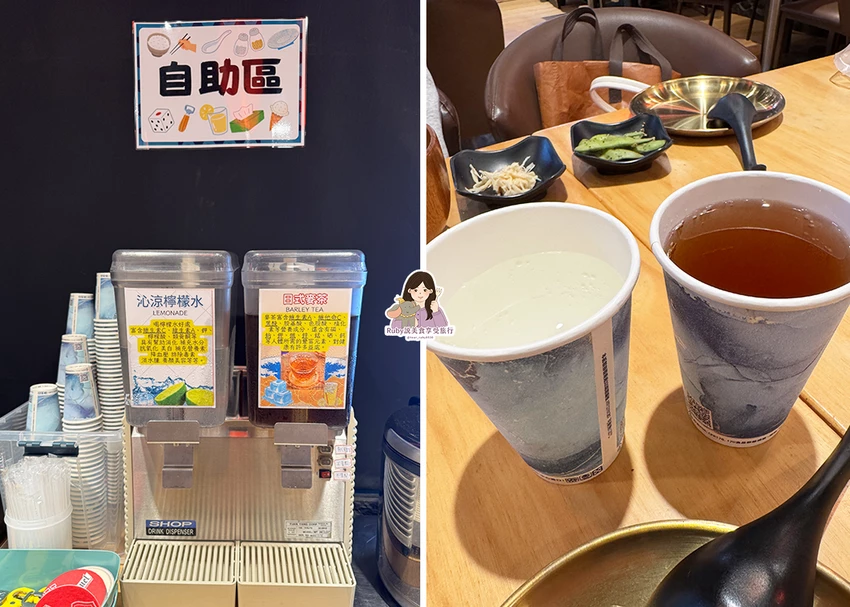 飲品重點是都是無糖!有無糖的日式麥茶及養顏美容的檸檬水