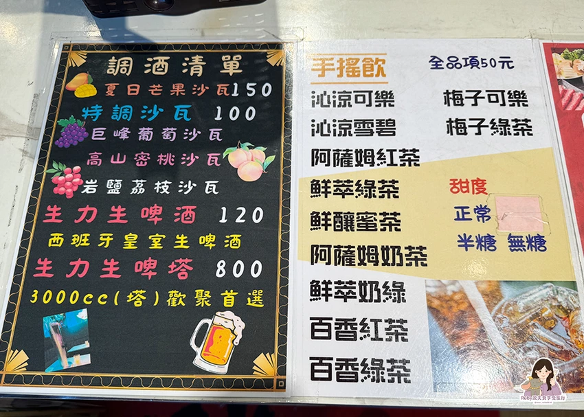 飲料想要有糖的或是沙瓦甜味較重的調酒也都可以另外單點喔。