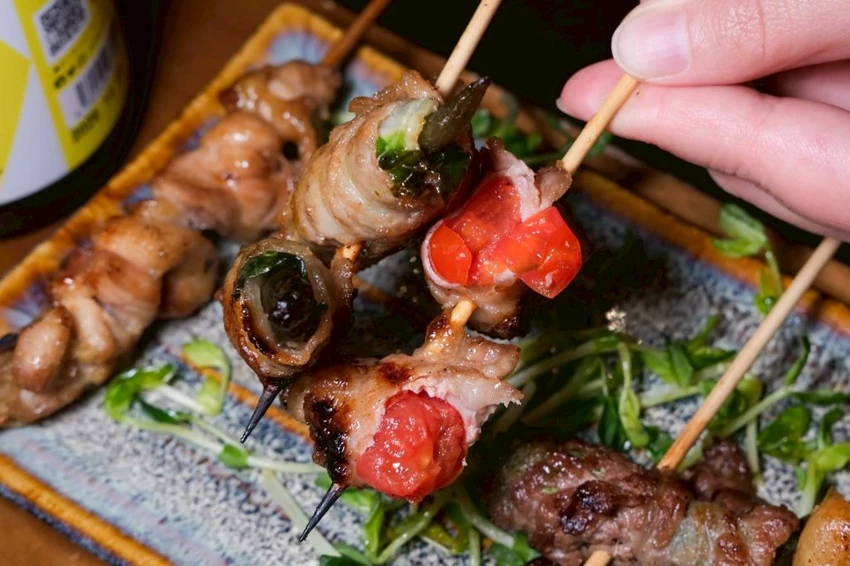 ▼他們串燒幾乎是外面兩倍大, 而且只要$35起很佛心,醬汁都是自己調, 不會死鹹非常剛好,採用炭火烤到香噴噴,吃起來香氣十足,必點水蓮牛肉捲咬下會爆汁😍