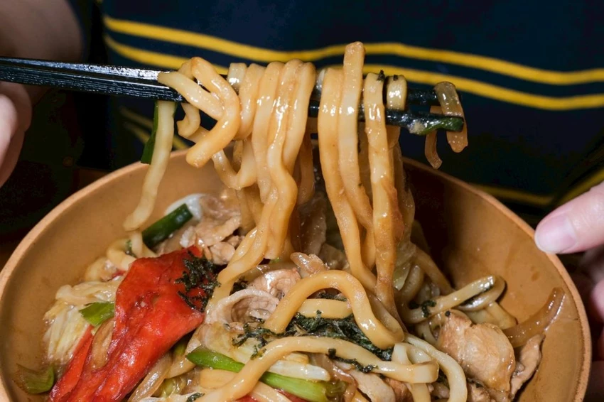 ▼這道海鮮烏龍麵有讓我驚艷欸,麵條吃起來超級彈牙,鹹甜鹹甜好涮嘴,還有超大蟹肉棒和肉肉,讓人大滿足!