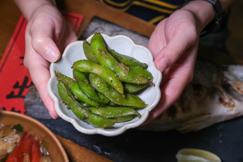▼【今夜有局串燒餐酒館】入座就會招待一份毛豆開開胃。