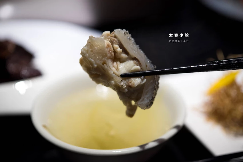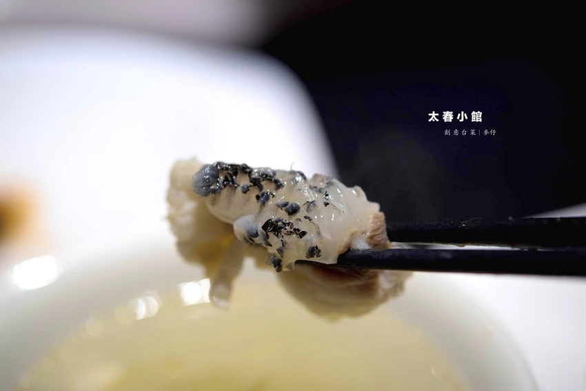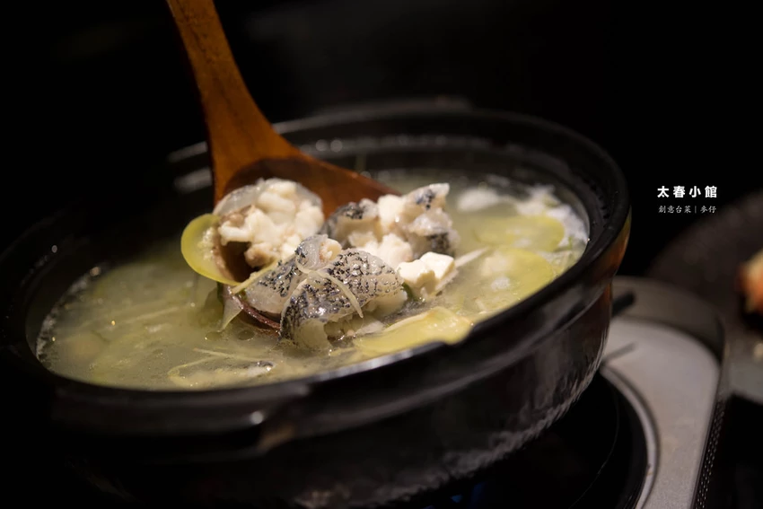 來到太春絕對不能錯過這道「龍膽石斑魚粥」。師傅堅持繁複工序,使用雞湯作為基底,米粒需先炒至半熟再與高湯熬煮,最後加入新鮮現殺的龍膽石斑。魚皮富含豐富膠質,口感 Q 彈宛如果凍,魚肉則軟嫩鮮甜。整鍋粥品集結了雞湯的濃郁與海鮮的清爽鮮味,口感層次豐富,是一道費時費工的功夫菜,無論大人小孩都會愛上這溫潤的滋味。
