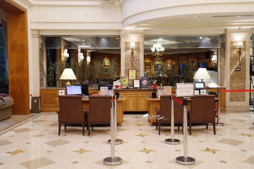飯店位於綠意盎然的青草湖畔,環境清幽宜人。園區共分為香榭館、麗池館與溫莎館三棟不同風格的建築,辦理入住的大廳位於麗池館,挑高的歐式設計寬敞明亮,隨著節慶到來更增添了濃厚的聖誕氛圍。這裡主打「吃、喝、玩、樂、住」全包式享受,入住時間為下午四點,提早抵達的旅客可先掃描 QR Code 報到,並利用等待時間在園區內漫步,或至一樓陽光小館享用精緻下午茶,感受悠閒的度假時光。