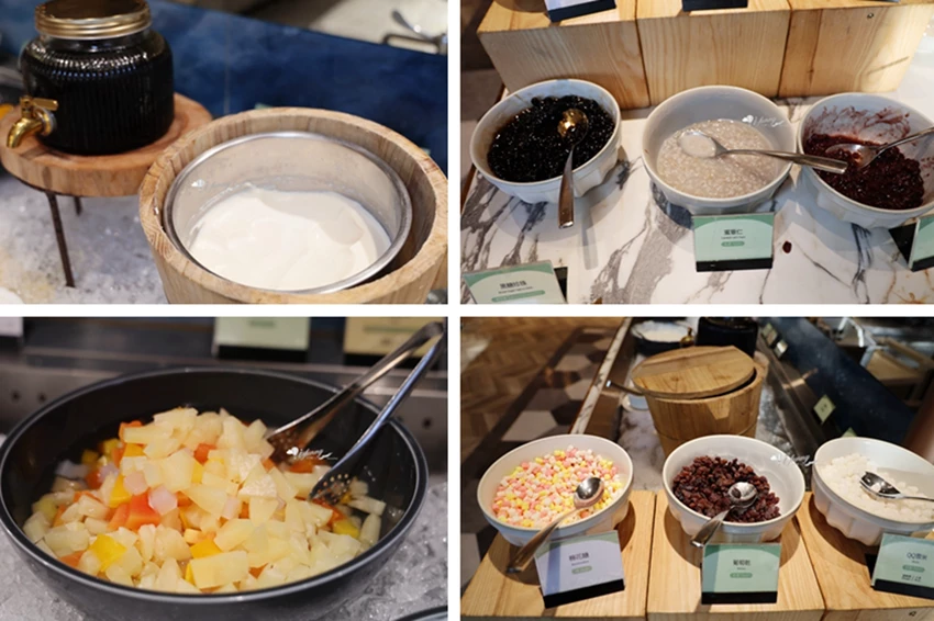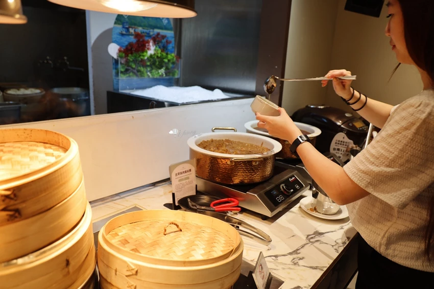 隔日的早餐同樣精彩,提供了世界冠軍王鵬傑製作的蜂巢麵包與酸種麵包,還有多達九種特色抹醬,如在地限定的客家香桔汁。熱食區更有現煮的馬來西亞米其林星級湯品「野薑花雞湯佐春雨蒟蒻」,以及新竹在地的肉燥米粿、吾點拌食小籠包與及第蟹黃海珍粥。從中式粥品、現煎荷包蛋到西式沙拉、起司與各式炸物,種類繁多且道道美味,絕對是開啟活力一天的最佳方式。