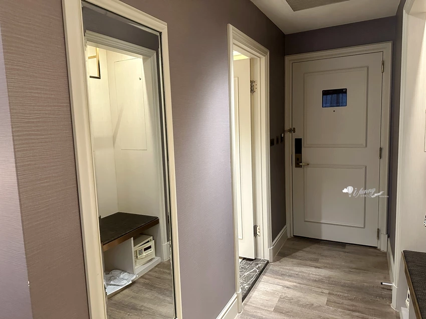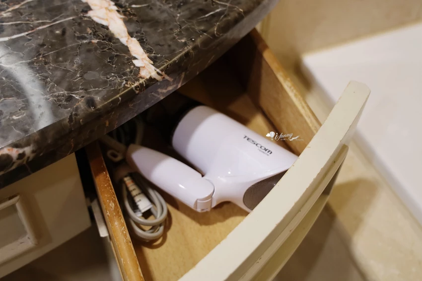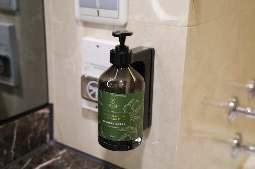 響應環保政策,客房內不提供瓶裝水,但在每層樓電梯口皆設有飲水機方便取用。衛浴空間採乾濕分離設計,免治馬桶與明亮的化妝燈讓使用體驗更加升級。沐浴備品選用 Valvola 法莫拉法國有機系列,包含金盞花洗髮精與洋甘菊沐浴露,溫和洗淨同時呵護肌膚。此外,房內還提供免費飲品與電子保險箱,各項貼心設施一應俱全。
