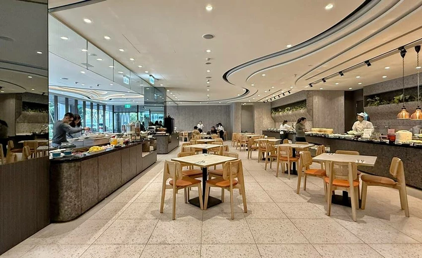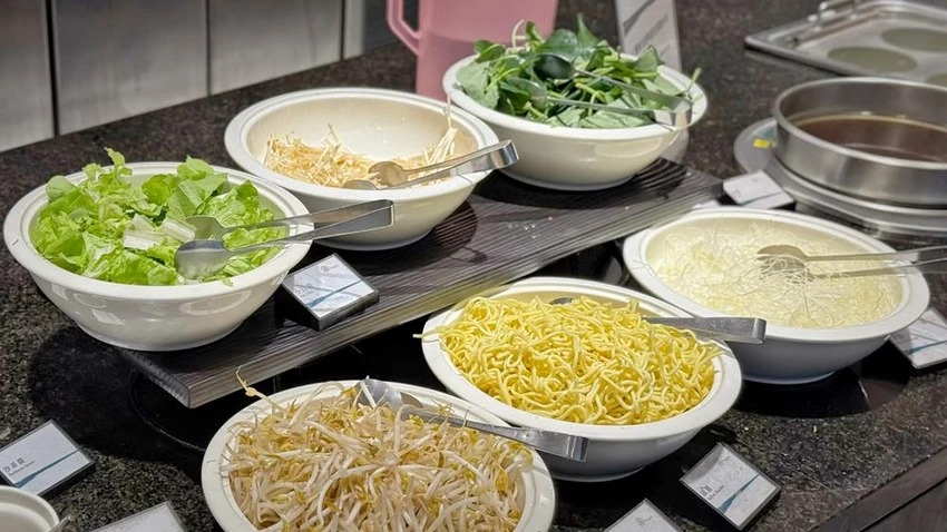 冠翔泉旅最被推崇的服務,絕對是超長的早餐用餐時間。自助式 Buffet 一路從早上 7:00 供應至下午 1:30,住客只需報房號即可入場。這意味著你可以選擇睡到自然醒,甚至 11 點退房後再來享用一頓豐盛的早午餐。餐廳環境明亮舒適,菜色選擇多樣,包含宜蘭在地特色料理、現煎蘿蔔糕、荷包蛋以及 DIY 現煮麵區,補菜速度快且無用餐時間限制,CP 值極高。