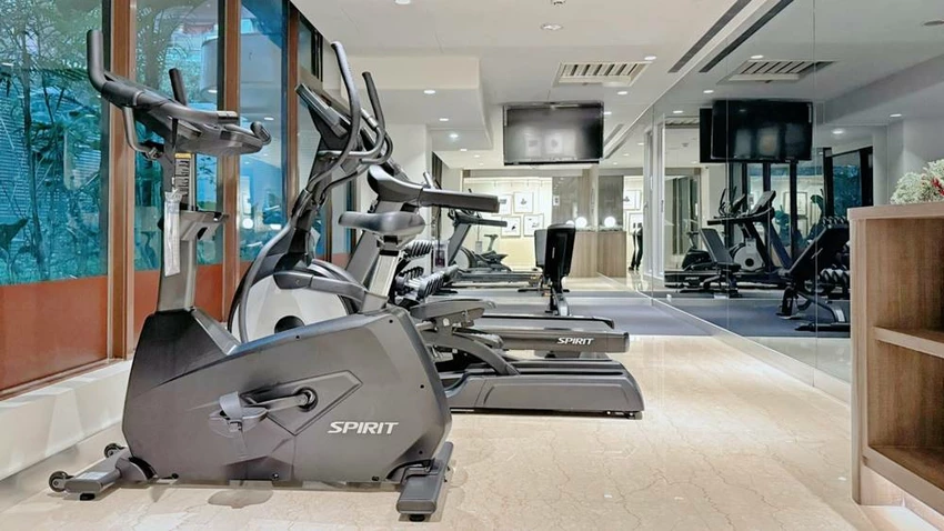 除了親子設施,飯店在二樓也規劃了健身房與閱覽室。健身房雖然空間簡約,但跑步機、滑步機與踏步機等基本器材一應俱全,入內需使用房卡感應。閱覽室則位於電梯旁,提供舒適的閱讀環境與各式書籍,一旁還貼心準備了不少小點心供房客取用。牆面上展示的義賣畫作更增添了幾分文藝氣息,是個適合安靜閱讀或放空的好角落。