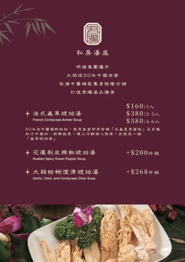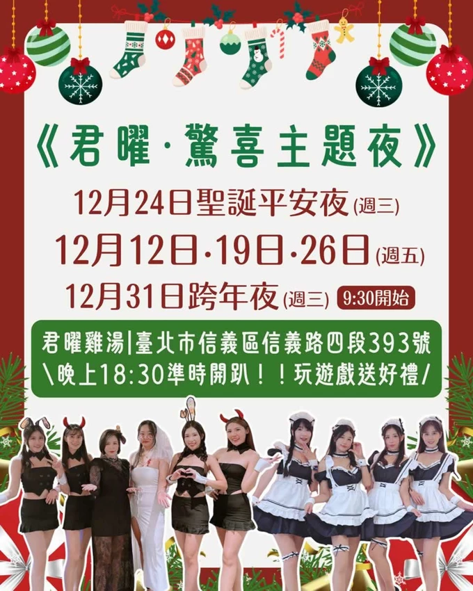 繼星曜雞湯之後,信義區又迎來了其姊妹店「君曜雞湯」。這間被譽為雞湯界 LV 的火鍋店,地理位置極佳,鄰近捷運台北 101/世貿站,步行即可近距離欣賞台北 101 的壯麗景色。店內主打耗時 24 小時慢火細燉的「人蔘花膠全雞金湯」,湯頭融合了珍貴藥材與老母雞的精華,滋味醇厚溫潤。除了頂級的鍋物料理,君曜雞湯還推出了驚喜的主題夜活動,不僅有 Show Girl 帶動現場氣氛玩遊戲送好禮,更有生啤酒買一送一等超值優惠。無論是年末聚餐、慶生派對,或是想要在跨年夜找個舒適的地方享受美食並等待煙火,這裡絕對是信義區火鍋的第一首選。