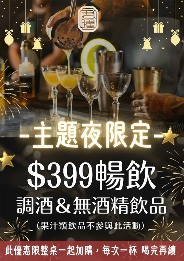 君曜雞湯最令人期待的莫過於特定的「主題夜」活動。當晚會有 Show Girl 化身不同角色與顧客進行轉盤或賓果等互動遊戲,運氣好的話還能贏得免費料理等大獎。對於喜愛小酌的朋友,主題夜更是不可錯過,現場提供調酒與生啤酒買一送一的優惠,若整桌朋友都愛喝,還可選擇調酒與無酒精飲品無限暢飲方案。此外,只要打卡分享或評論,店家還會大方贈送可無限續加的小菜,誠意十足。