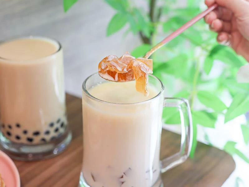 手摘茶凍青奶茶,清爽回甘解甜膩
