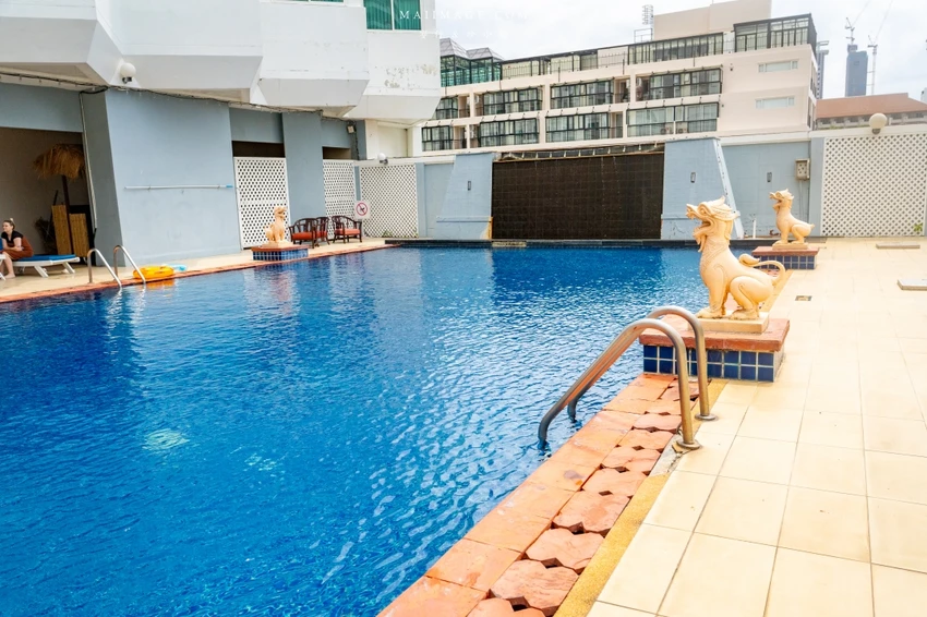 飯店座落於芭達雅較為寧靜的中天海灘旁,周邊飯店密度較低,遠離了鬧區的吵雜與擁擠,非常適合想要純粹放鬆的旅客。在 Google 評論上擁有超過六千則留言且維持 4.2 顆星的高分,住宿品質備受肯定。一踏入飯店,挑高寬敞且採光良好的氣派大廳隨即映入眼簾,營造出舒適大器的迎賓氛圍,讓人瞬間切換成度假模式,準備迎接接下來的美好假期。