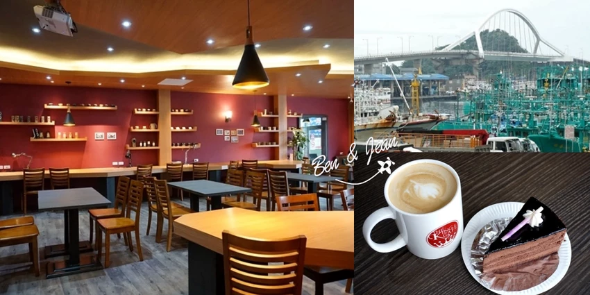 「穀王烘焙」南方澳門市樓上悠閒的咖啡空間可欣賞漁港風光,樓下可以選購精緻的伴手禮