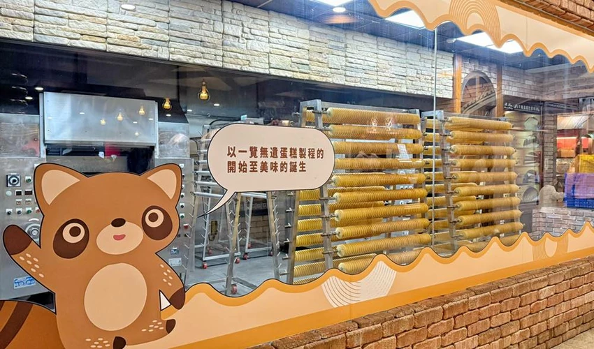 走進販售區,映入眼簾的是超大的透明玻璃櫥窗。遊客可以近距離觀賞師傅們現場製作銅鑼燒與年輪蛋糕的過程。看著銅鑼燒在煎盤上成形、年輪蛋糕一層層烘烤冷卻,畫面相當療癒且具教育意義。館內還有一座可愛的「年輪小火車」裝置藝術,原本是熱門的拍照打卡點,但因為人潮實在太多,想卡位拍照往往需要一點運氣與耐心。