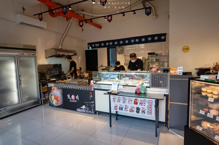 餐廳地理位置優越,緊鄰三峽老街,步行約 8 至 10 分鐘即可抵達,周邊亦設有收費停車場,交通相當便利。店面採雙店面設計,將廚房外帶區與內用區隔開,半開放式的廚房讓備餐過程一目瞭然。對於生食料理而言,環境衛生至關重要,店內的冷藏櫃狀態良好且料理台保持整潔,讓顧客在享用生魚片時能更加安心,是個舒適且令人放心的用餐空間。