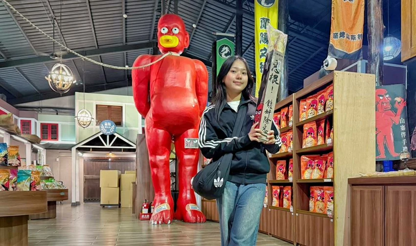 宜蘭窯烤山寨村免門票參觀,館內巨型赤鬼妖怪造景吸睛,招牌七十公分惡棍麵包更是必買的人氣伴手禮。